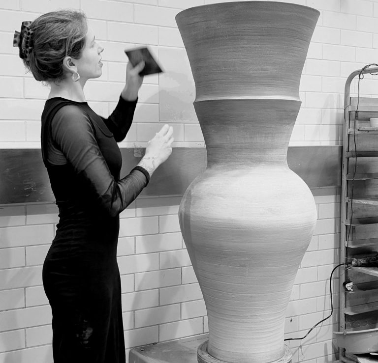 I am a ceramicist based between Glasgow and London, working primarily with the wheel to create large-scale, segmented forms. My practice navigates the balance between structural control and material unpredictability, using precise construction to anchor expressive, reactive glaze surfaces. Process functions both as a framework for discipline and a space for intuitive dialogue with the material. Through a combination of traditional and emerging techniques – including throwing, hand-building, 3D clay printing, and VR modelling – I explore form and identity, often drawing on landscape and personal experience to shape both structure and surface.